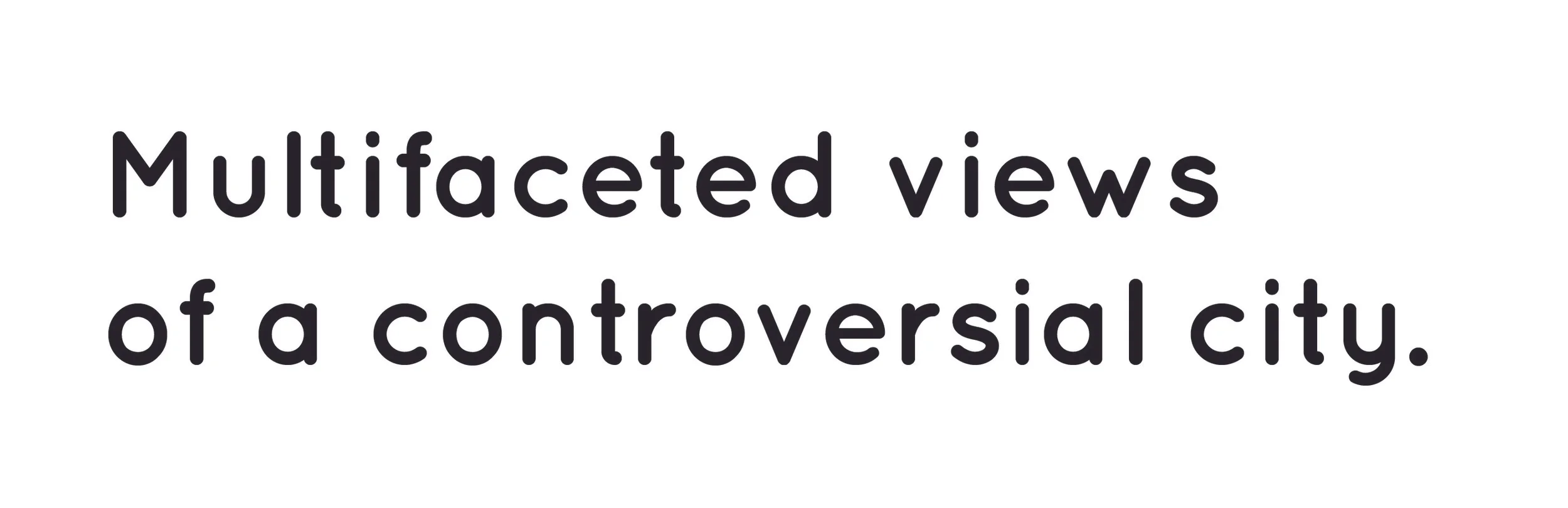 Every image I saw of Jerusalem reflected a prejudicial point of view. After exploring many adaptions, I realized that it was impossible to portray multifaceted Jerusalem in one image. This frame is developed from my logo. The uneven angles of this thin white outline infer that Jerusalem does not fit into a predictably dimensional box. The tagline, Uncover, tells the viewer to keep searching to find the many points of view in this aged-old city.